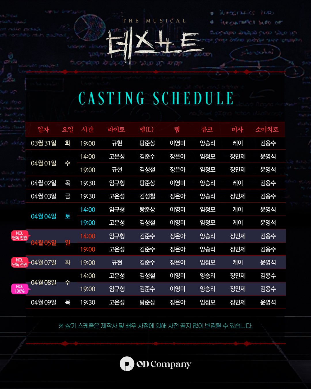 ■8次日程:03月31日~04月19日